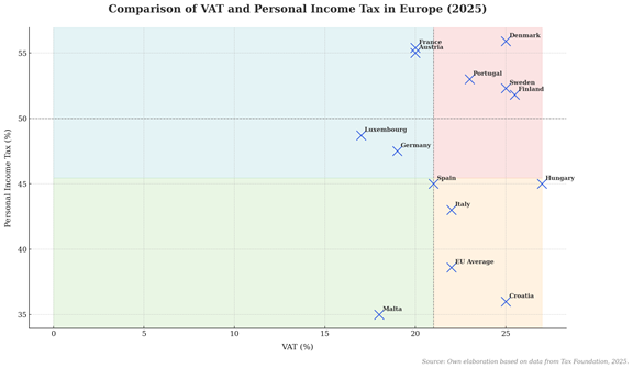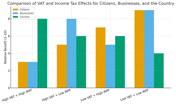Ultimately, a balanced tax system must generate revenue without hindering economic growth and be capable of financing social welfare without compromising development, combining a moderate VAT and a progressive income tax within a coherent and sustainable fiscal policy.