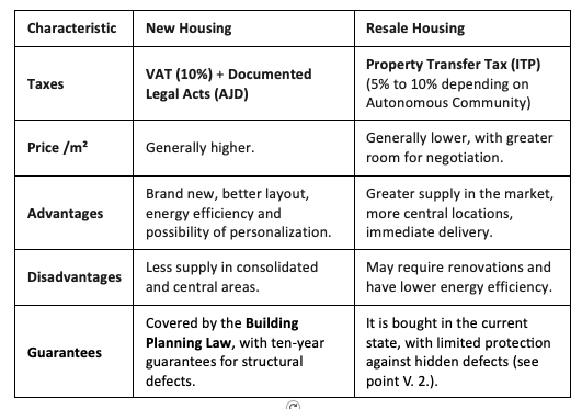 The choice between new construction and resale housing, the management of procedures such as the NIE or the mortgage, and the legal review by qualified professionals are decisions that directly influence the success of the operation. Likewise, understanding the tax burden, correctly analyzing the area, and anticipating possible problems—such as hidden defects, registration charges, or urban discrepancies—allows avoiding costly risks for both residents and foreign buyers.